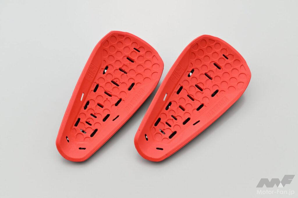 衝撃や摩擦を直接抑制する外側は、防護専用の靭性PP素材でできたハードシェルを導入。内側にあるハニカムリブでソフトシェルに伝わる衝撃を拡散させ、ダメージを軽減。