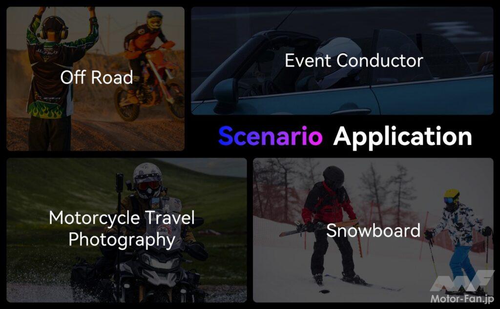 F1 Proは日常のソロ走行から10人以上のマスツーリングまで対応可能なオールラウンド型。Bluetooth通話や音楽、ナビとインカム通話のマルチタスク通信に対応し、音声操作やアプリでのカスタマイズも可能。オフロードやウィンタースポーツなど過酷な環境にも対応できる耐久性と利便性を備えている。