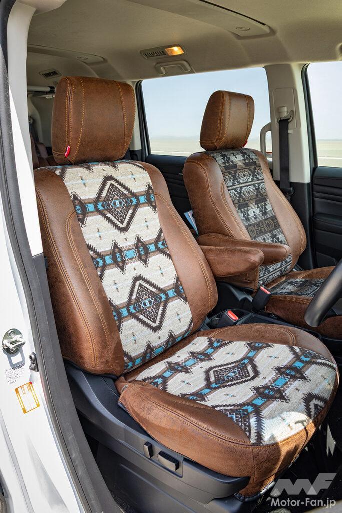インテリアでは、オルテガ柄やナバホ柄を採用したシートカバーが追加。まさに、クルマ全体に死角なくアイテムがあるので、ワクワクしながら吟味して欲しい。