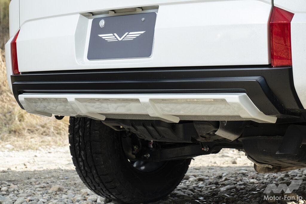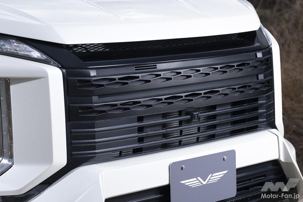 スキッドプレート風の造形を持たせたフロントディフューザーはキレのある直線造形で、力強さとスポーティさを同時に底上げる秀逸な仕立て。ロングノーズ&バッドフェイス化を果たすレーシングボンネットも、片側9㎜ワイドのオーバーフェンダーキットも、躍動と力感が入り混じるまさにスポーツオフローダーといった印象だ。