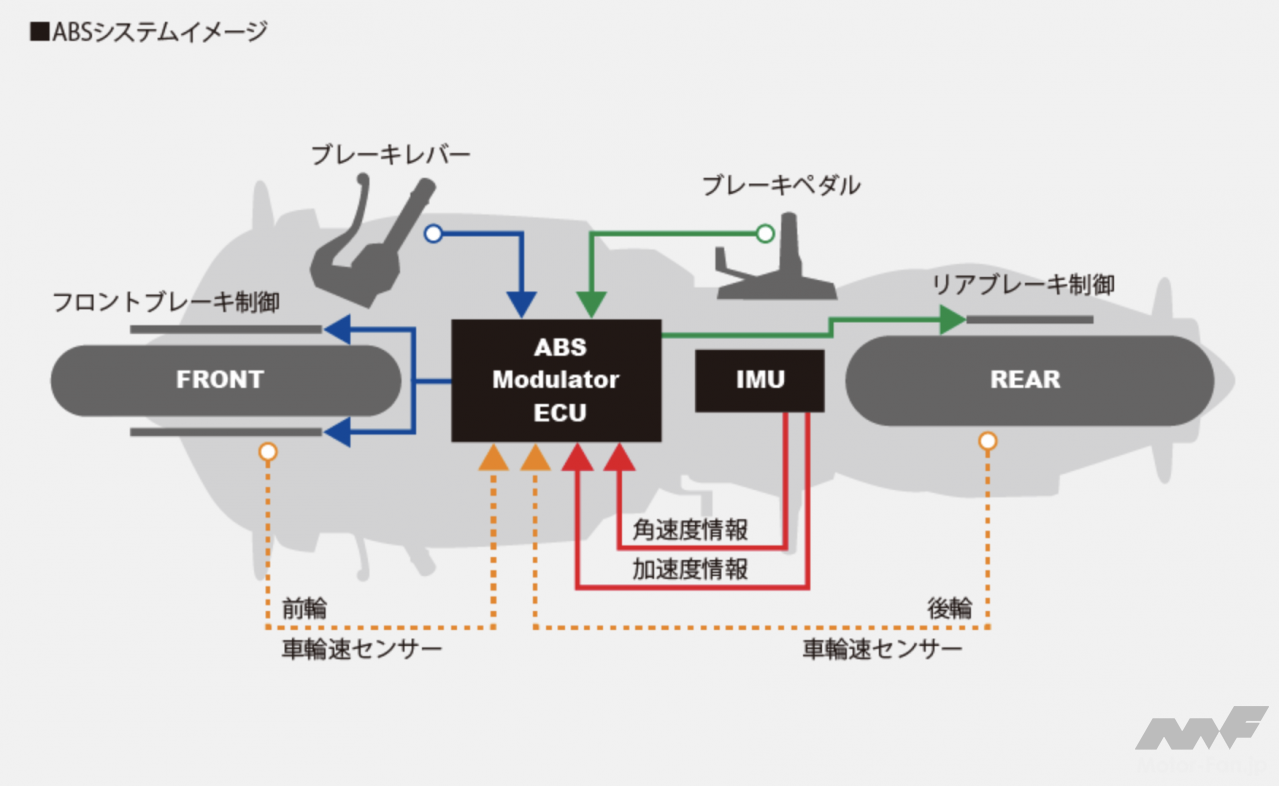 ABSにもIMUをフル活用する最新の電子制御技術が投入されている。