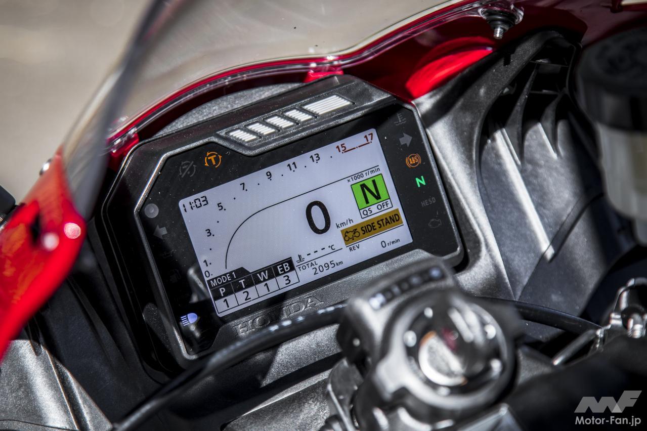その意味で、ワインディング路でも気持ち良く程良いスポーツライディングが楽しめるCBR600RRのポテンシャルと扱いやすさは好印象。市街地でもその柔軟な出力特性故にストレスは感じられなかった。