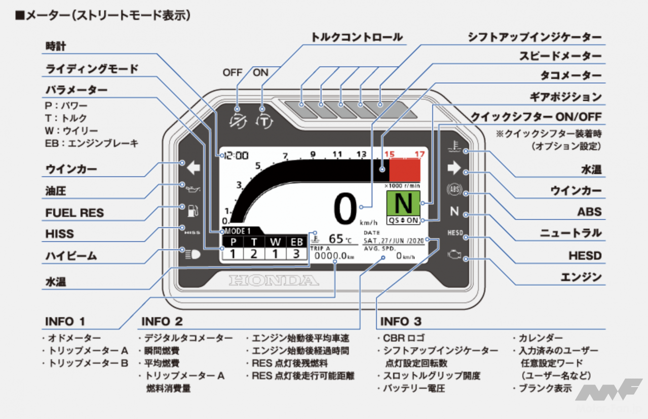 さらにはライダーのスロットル操作に対するレスポンス(出力特性)が5段階に任意設定できる他、9段階+OFFのトルクコントロール、3段階+OFFのウィリー挙動緩和制御、3段階のエンジンブレーキ制御が、ライダーの好みや走るステージに応じて選択可能。