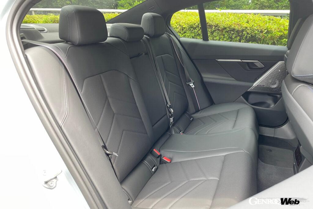 第一印象は「でかい」。全長5060mm(先代523i比+85mm、以下同)、全幅1900mm(+30mm)、全高1505mm(+25mm)、ホイールベース2995mmの堂々たるボディは、見た目もでかいが運転感覚も大きなクルマを走らせている印象だ。サイドシルを黒くすることで目立たなくしているが、フロアに敷き詰められたバッテリーのため、クルマは見た目分厚い。しかし、駐車場ではリヤステアのおかげか取り回しはいい。最小回転半径は5.8mで、多少狭くても往生することはないだろう。ただし、そもそものサイズがでかいので当然広い駐車スペースは必要だ。