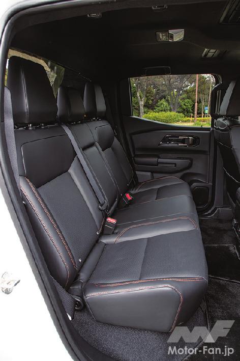 本来は働くクルマだが、日本ではSUVとして使う方が多いだろう。足まわりもフロントはコイルスプリングだが、リヤはリーフスプリング。しかし、それを感じさせないほど、乗り心地がイイ。新開発2.4ℓ直列4気筒ディーゼルターボエンジンに、6速スポーツモードATの組み合わせは、車内へさほど音も入ってこなくて快適だ。