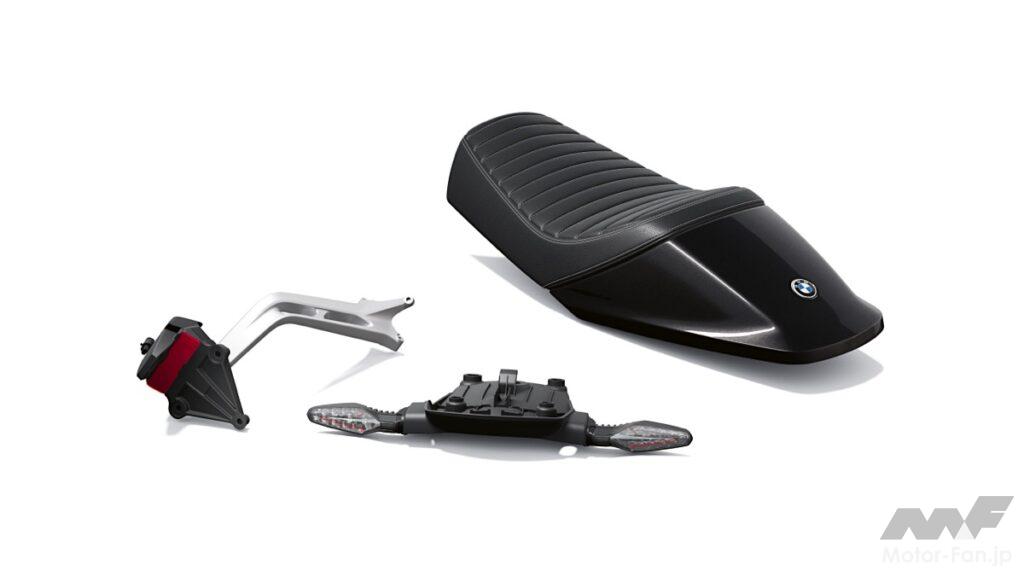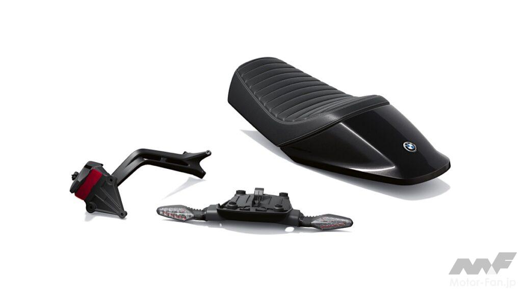 「The Tracker」パッケージに含まれるのは、いずれもブラックストーム・メタリック塗装が施されたエレメントだ。具体的には、ショートリアエンド(ブラックまたはシルバーのナンバープレートホルダーと多機能インジケーター付き)、コックピットフェアリング、ナンバープレート本体、ステッカーセット(ナンバープレート用とランプマスク用)、17インチ前輪用フェンダーカバーが含まれる。いずれも個別購入にも対応しており、BMW純正アクセサリーならではの高い拡張性とカスタマイズ性を備えている。