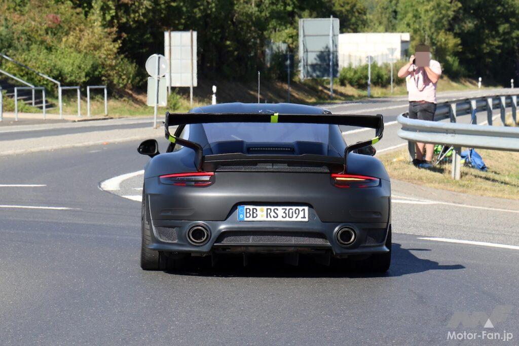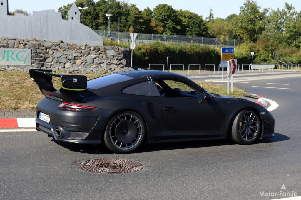 ちなみに、このモデルは先代911 GT2 RSのManthey(マンタイ)キットに酷似していることからも、このプロトタイプが、ポルシェの特別仕様車ではなく、マンタイの新型モデルを示唆している可能性も拭えない。しかし、前述の通りポルシェがこれらの名称を商標登録していることから、これが特別仕様車であると推測される。