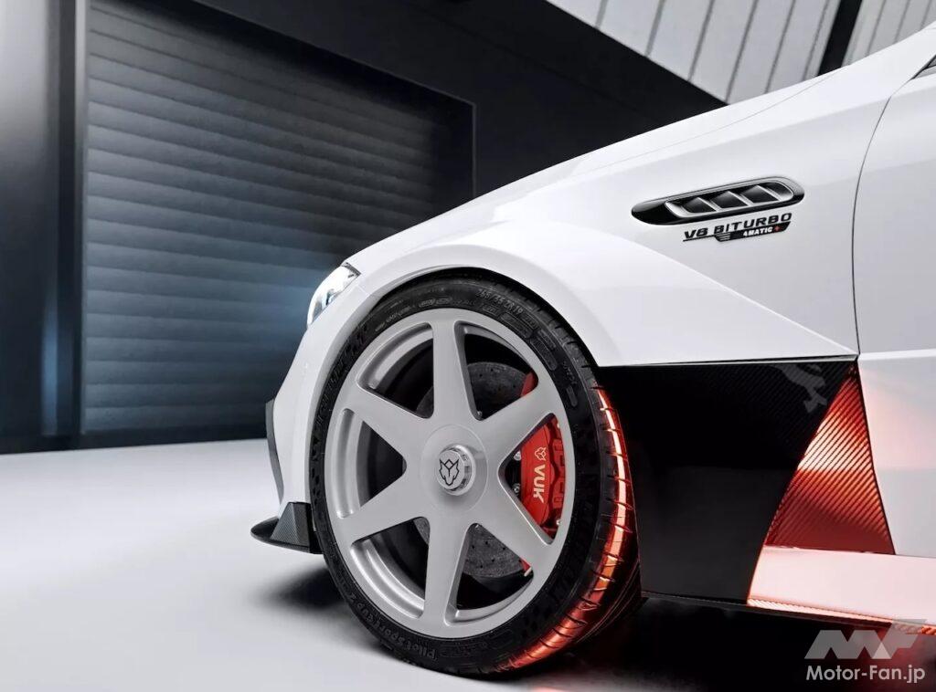 現行のメルセデスAMG C 63 Sは、2.0L直列4気筒ハイブリッドエンジンを搭載し、顧客から批判されているが、Vuk Manufacturは、往年のAMG製4.0L V8ツインターボ(おそらくM177型)を移植しているのが最大の特徴だ。