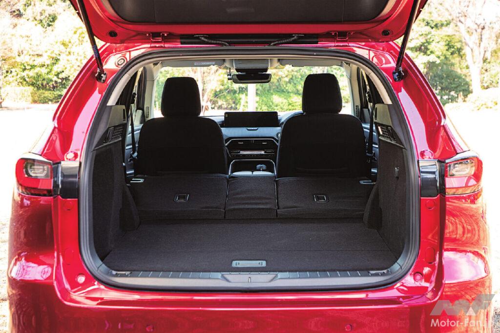 大きな特徴は、エンジンを縦置きにしたFR(後輪駆動)レイアウトを基本にしていること。エンジン横置きFFベースの方がスペース効率は良いが、FRベースは前後重量配分がバランス良くできるし、操舵輪と駆動輪が役割分担できるから、ハンドルを切った際の素直な応答もつくり込みやすい。すなわちラージクラス商品群は「マツダは走りの質感でもプレミアム水準を狙います!」宣言と言えるのだ。