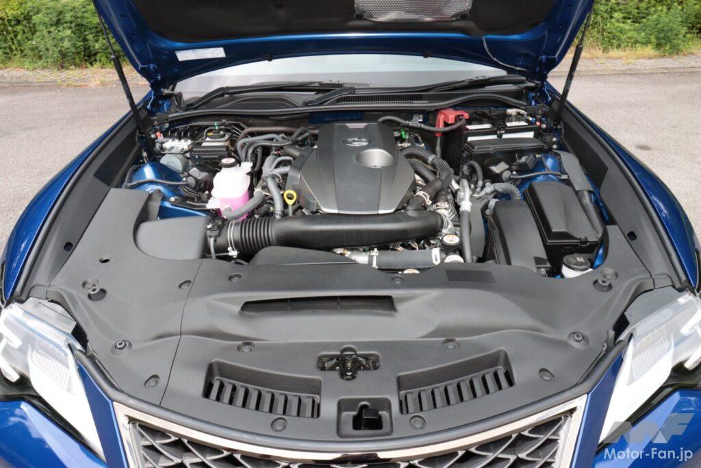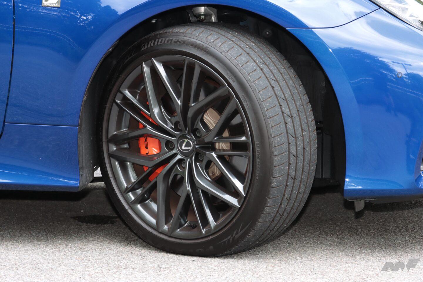 しかし、ナビ連動電子制御ダンパー「NAVI・AI-AVS」が全車標準装備されているとはいえ、フロントに235/40R19 92Y、リヤに265/35R19 94Yのブリヂストン・ポテンザS001Lというファットなスポーツタイヤを履く「Fスポーツ」の乗り心地は相応に硬め。細かな凹凸は綺麗にいなすものの、大きな凹凸を乗り越えた際の突き上げは強く、またひび割れた路面を走ればロードノイズも少なくない。高級車というよりスポーツカーらしい乗り味と表現した方がより正確であろう。