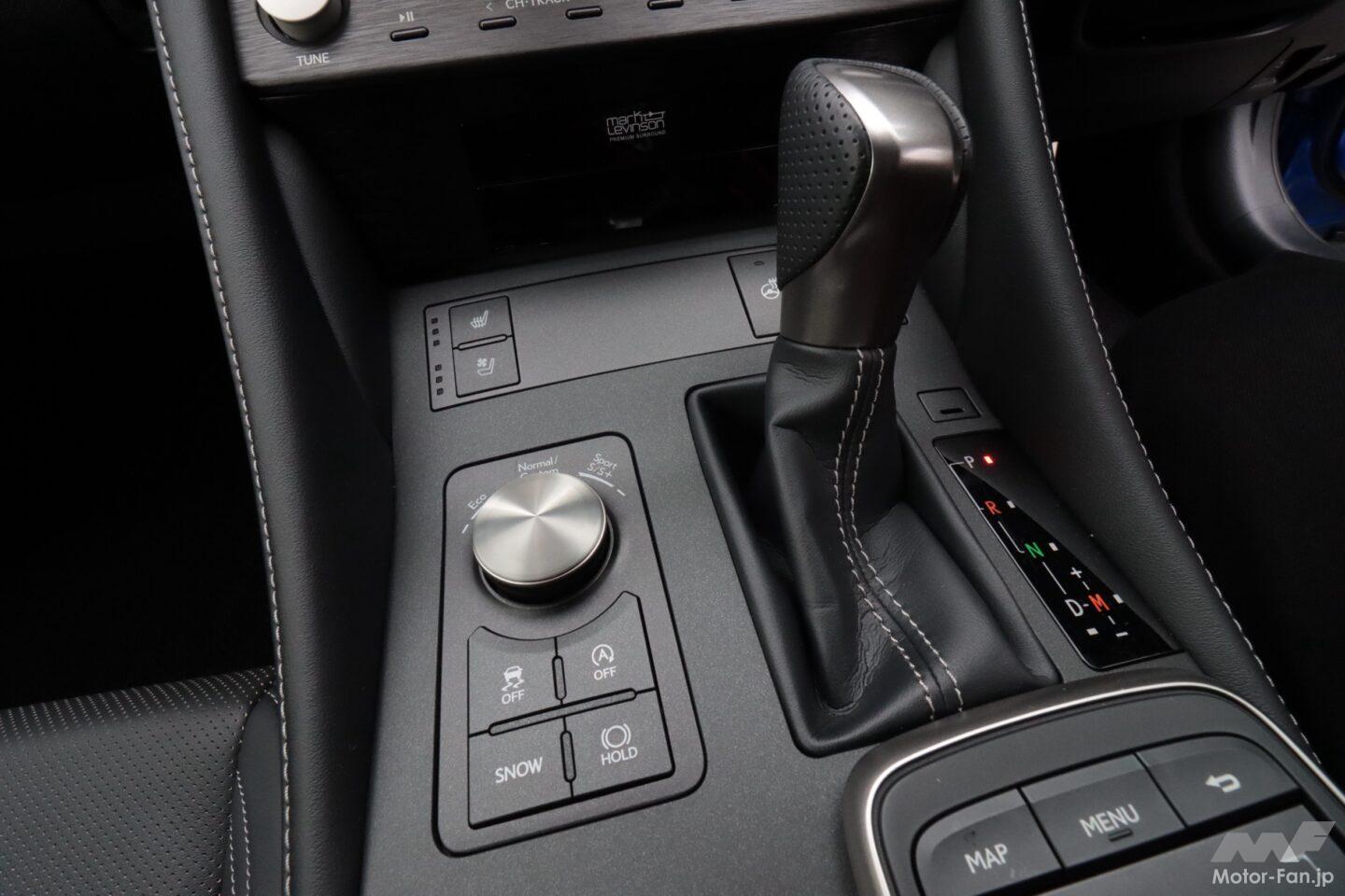 一方、前述の「NAVI・AI-AVS」は、ドライブモードが「SPORT S+」の際のみ硬くなり、それ以外では標準的なセットアップになるのだが、後者のモードでは速度域が上がるにつれ、減衰力の不足からくる揺れの収まりの悪さが気になってくる。そこで「SPORT S+」に切り替えれば乗り心地はやはり硬くなるものの、揺れが素早く収まることで不快感はむしろ減り、車体の安定性も高まる。またアクセルの踏み込みが浅ければいたずらに低いギヤを選ばず燃費優先の制御を行うため、積極的に使うのをおすすめしたい。