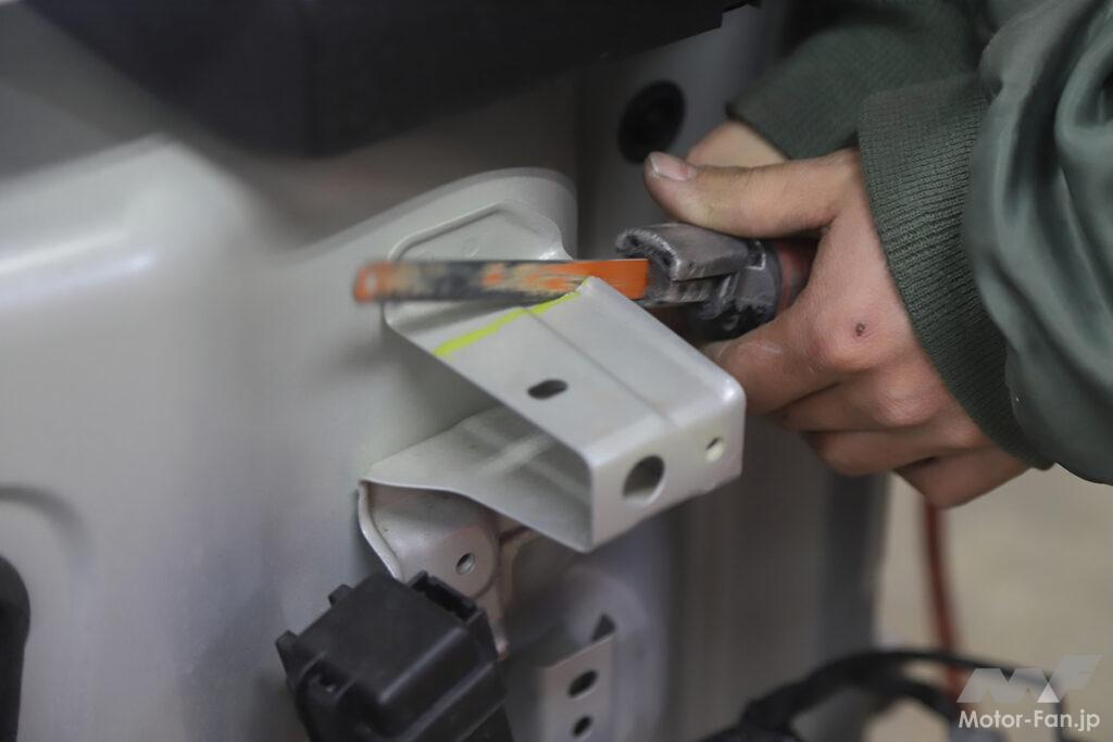 ジムキャリイのヘッドライトに干渉する箇所を加工