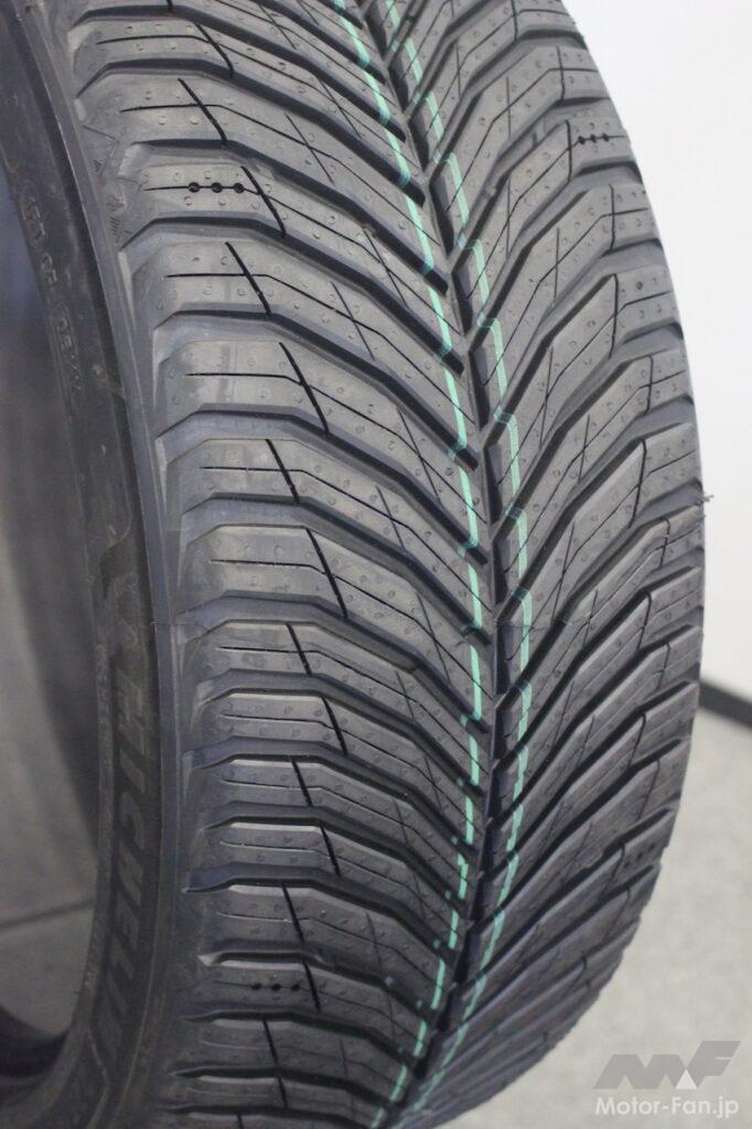 コンパウンドは、「クロスクライメート2」や「クロスクライメート3」と同等だが、「スポーツ」向けにチューニングを行っている。オールシーズン専用トレッドコンパウンドの「サーマル・アダプティブ・コンパウンド2.0」を初採用し、スノー性能に加えて、高いドライとウェットグリップを確保するという。転がり抵抗ラベリング「A」を維持しつつ、ウェットラベリング「a」を獲得していて、相反する要素を両立している。