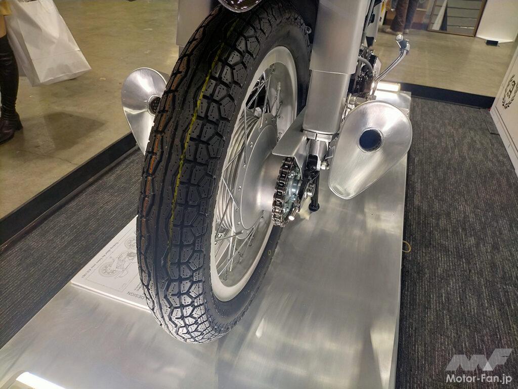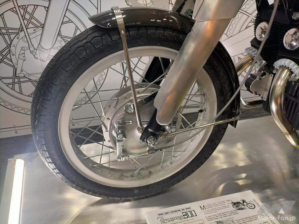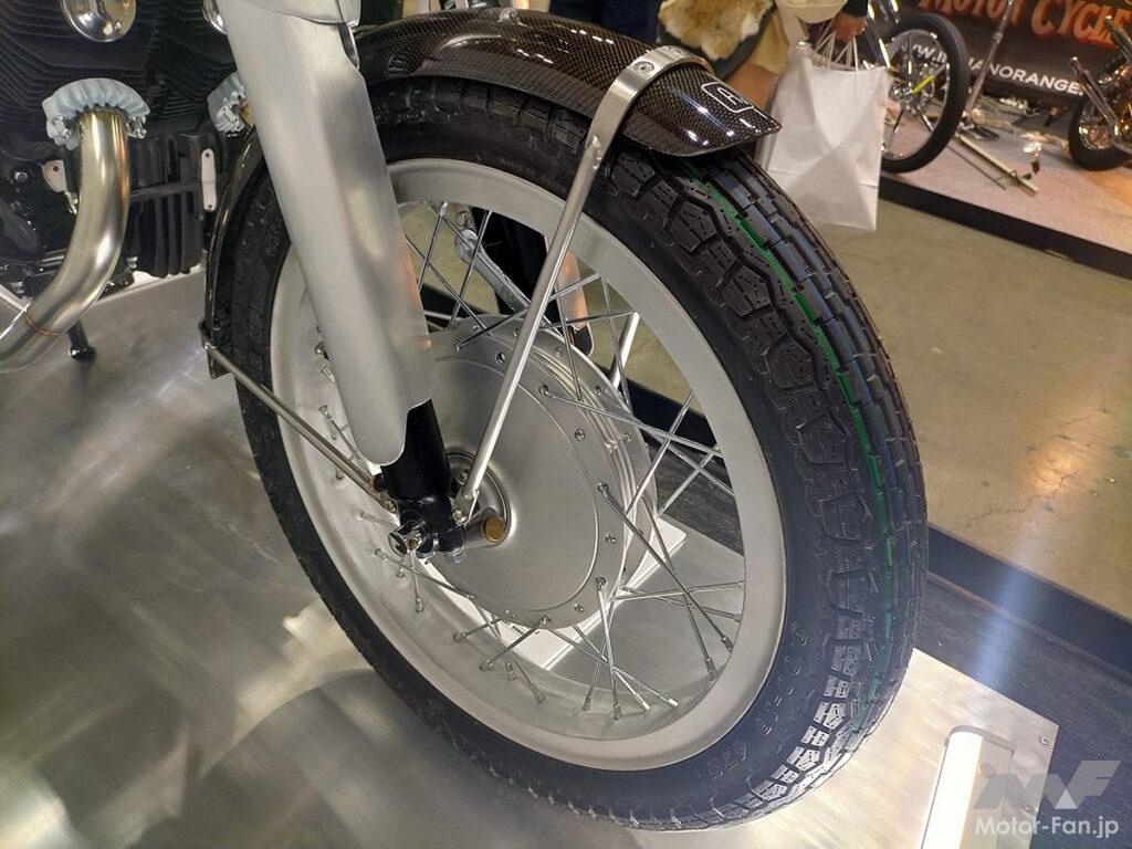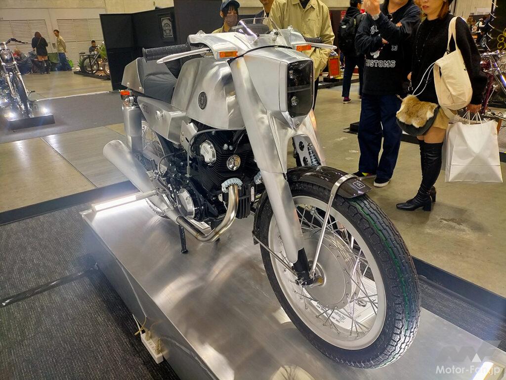 「ドリームCBM72」をイメージしたその外観は、ビンテージ感を押し出したデザインのワンオフアルミパーツ群でドレスアップ。ガソリンタンク、LEDヘッドランプケース、ハンドルカバー、フロントフォークカバー、サイドカバー、シートカウル、サイドカバー、キャブレターガード、リアショックカバー、チェーンカバー。また2本出しダウンマフラーのサイレンサー部もアルミでドレスアップ。