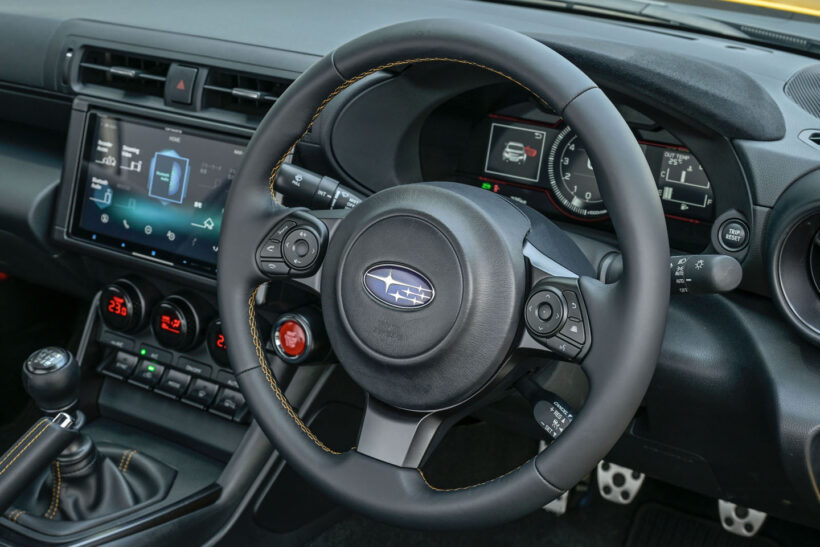 プレスリリース SUBARU BRZ、300台の抽選限定販売による特別仕様車「STI Sport YELLOW EDITION」を発表 ~併せて「FUJI 86/BRZ STYLE 2025 with 頭文字D」イベントで実車を展示・動画コンテストの詳細発表も~【写真・3枚目】 サンライズイエロー 18インチアルミホイール ブレンボ製ベンチレーテッドディスクブレーキ(ゴールドキャリパー、フロント17インチ対向4ポット、リヤ17インチ対向2ポット) BRZリヤオーナメント(ラスターブラック塗装) ウルトラスエード&本革シート(ブラック、イエローステッチ+イエローパーフォレーション ウルトラスエード&本革シート(ブラック、イエローステッチ+イエローパーフォレーション 本革巻ステアリングホイール(高触感革、イエローステッチ+ダークキャストメタリック加飾) 本革巻ステアリングホイール(高触感革、イエローステッチ+ダークキャストメタリック加飾) 本革巻ハンドブレーキレバー(高感触革、イエローステッチ)+ハンドブレーキレバーブーツ(イエローステッチ) シフトブーツ(イエローステッチ) ドアアームレスト(ブラック、イエローステッチ) BRZ YELLOW EDITION 専用刺繍(助手席ドアトリム) BRZ YELLOW EDITION 専用刺繍(運転席ドアトリム) UGCコンテスト告知ビラ この画像の記事を読む