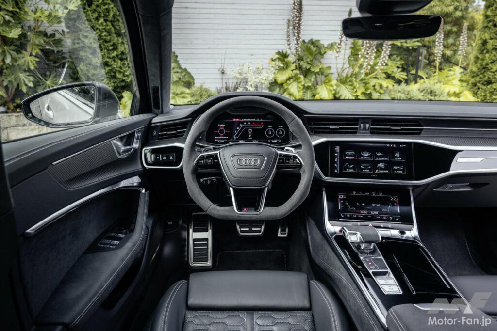 キャビン内は、ラグジュアリーとスポーティさが共存する空間になっている。直感的な操作が可能な「アウディ バーチャルコックピット」を中心としたデジタルインターフェースは、ドライバーを主役に据えて配置されている。カーボン製パネルやアルカンターラが随所に使用され、乗員が触れる部分は高級感のある素材で構成されている。