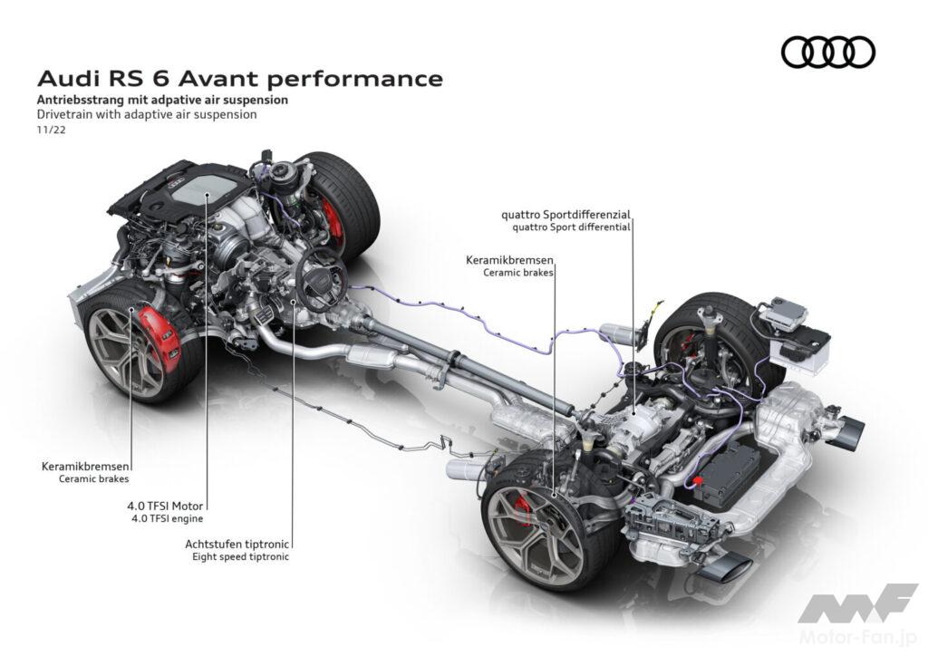 アウディ RS 6には多くの最新技術が投入され、走行性能と燃費性能の両立を図っている。