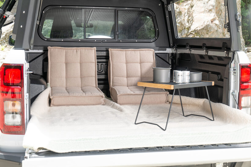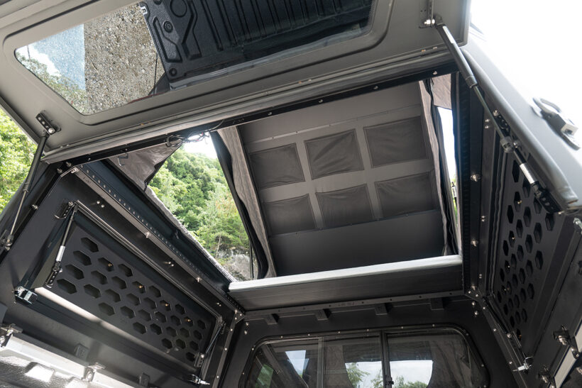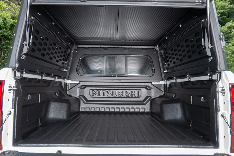 車中泊 『三菱トライトン』を秘密基地に! ポップアップテントが一体式の“ピークネストキャノピー”が秀逸すぎる!!【写真・2枚目】 フロントバンパーはタフなスチール製。逆三角のスタイリッシュな造形で、側面にはクマ型のダクトも備わる。 サイドステップ天面はメッシュ形状で、乗り降り時に靴の泥を落とすのにも便利。強度も万全で利便性も満点。 リアもフロント同様の逆台形デザイン。ヒッチメンバーと中央の縞板ステップも一体となる。センサー対応。 デモカーの足元にはピュアスピリッツ。サフォークXC、オークスXCともにオーバーランダー感の増幅に貢献。フロントアイアンバンパー33万4540円 リアスチールバンパー20万7240円 スチールサイドステップ13万4860円 タイヤ:モンスタタイヤ・テレーングリッパー(285/55 R20) ホイール:スーパースター・サフォークXC オークスXC (20×9.0J +21) 荷台の上にボルトオンで追加できるアルミ合金製のキャノピー。荷台を汚れなどから守るだけでなく、収納など空間を有効活用できる。 キャノピー側面は両側とも開閉が可能。外側には左右へ移動できるTスロットナットを使ってキャンプギアなどをかけられる。 この画像の記事を読む
