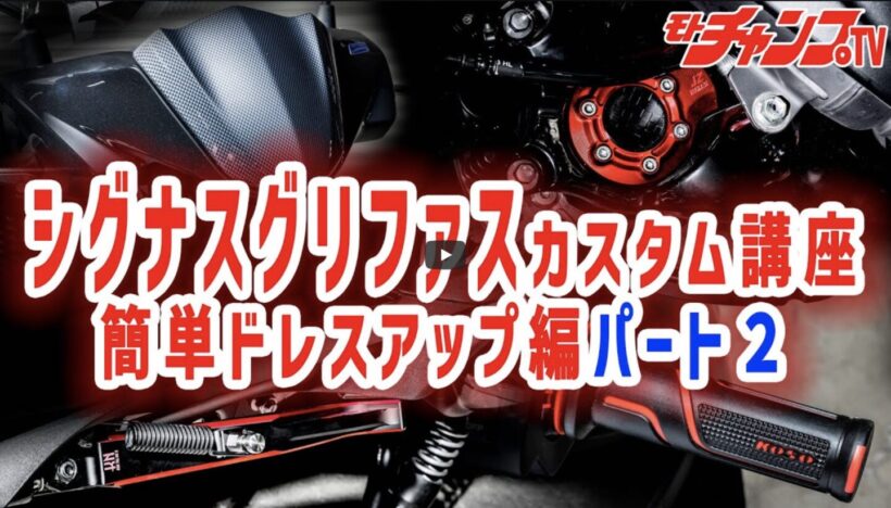 前回紹介したシグナス グリファスを簡単にドレスアップできるKN企画が取り扱うKOSO製パーツには、まだまだ豊富なラインナップがある。そこで今回は第二弾として無料動画を公開しているチャンネル・モトチャンプTVの中から「シグナスグリファスの満足度をアップする細部のドレスアップ!パート2」という動画をダイジェストにまとめてみた。写真が多いので順を追って参考にしてほしい。