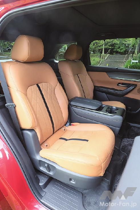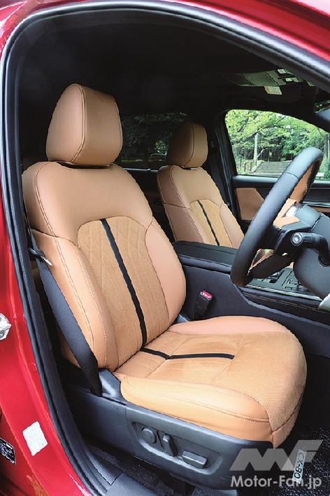 CX-60の初期モデルは乗り心地に課題があったが約2年間にわたって改良が進められ、CX-80にはそのノウハウが注ぎ込まれた。低速域での硬さは見事に払拭され、乗り心地は全般的にソフトタッチでマツダ車としては大らかな方だ。路面からの入力が大きいと上下動が残りがちという癖は残っているものの、不快に感じるほどではない。