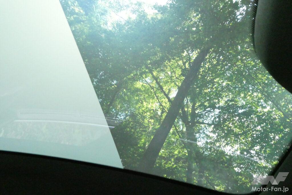 ステアリングはやや六角形で、アウディのシングルフレームグリルをイメージさせた。好みもあるが私は運転しやすいと感じた。ライトスイッチはドアのミラー調整スイッチの脇にコンパクトにまとめられ、セレクタレバーも時流に乗って小型化し、全般にクリック感などの操作フィールが洗練されている。試乗車はオプションのパノラミックガラスルーフ(33万円)を装備していたが、エレクトロクロミック式なので瞬時に切り替えられ、これも先進的だ。その分、従来と大差ないウインカー、ワイパー、ACCのレバー類はやや古さを感じさせた。