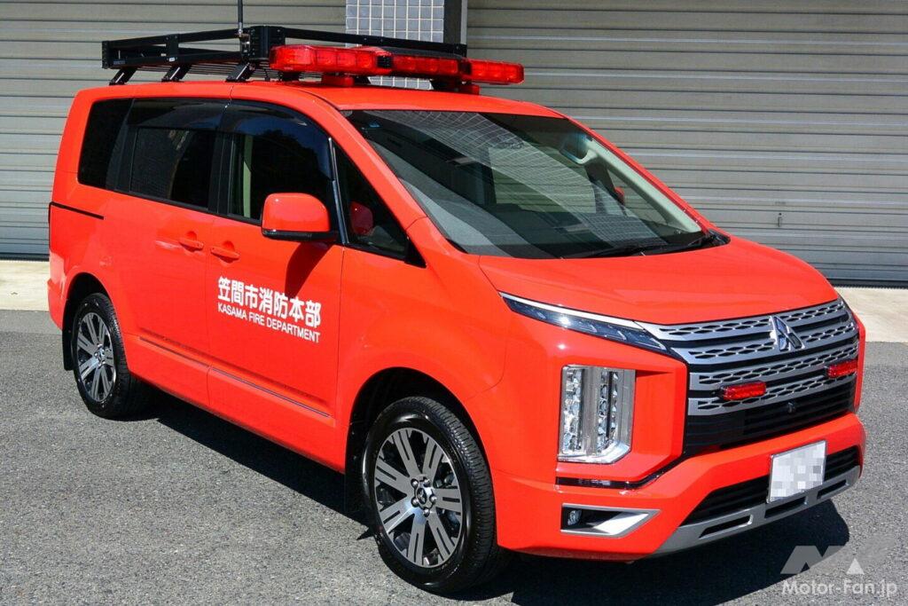 さて、消防指揮車のベースとなっているデリカD:5は、三菱自動車工業(以下、三菱)が製造販売しているSUV風のワンボックス・ミニバン型多人数乗車乗用車で、2007年にデビューしました。三菱ではワンボックス車ならではのスペース・ユーティリティと、オンロード/オフロードいずれにおいても高い走行性能を発揮するワンボックスタイプのミニバンということから“オールラウンドミニバン”と称しています。また、三菱が代々製造販売してきたワンボックス車『デリカ』のうち、多人数乗車の乗用モデルとしては5代目にあたることから『デリカD:5』の名が与えられています。「さまざまな走行環境下で、多くの乗員を安全に目的地まで運ぶ」という歴代デリカの特長を発展させ、「ミニバンの優しさ」と「SUV の力強さ」の融合を開発テーマに、走行性能、ボディ構造、室内環境にいたるまで、すべて新設計されてました。