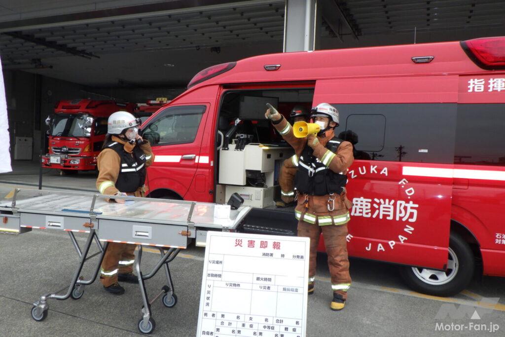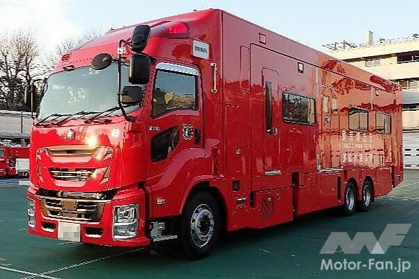 消防指揮車は、火災や地震、交通事故などの現場で指揮本部の役割を果たす特殊車両であり、消火や救助を直接行なうのではなく、現場の司令塔として機能します。その任務は多岐にわたり、まず指揮官が乗車して現場に到着すると前線指揮所を設置し、状況に応じて部隊をどこに配置するか、どのように行動させるかといった方針を即座に決定します。