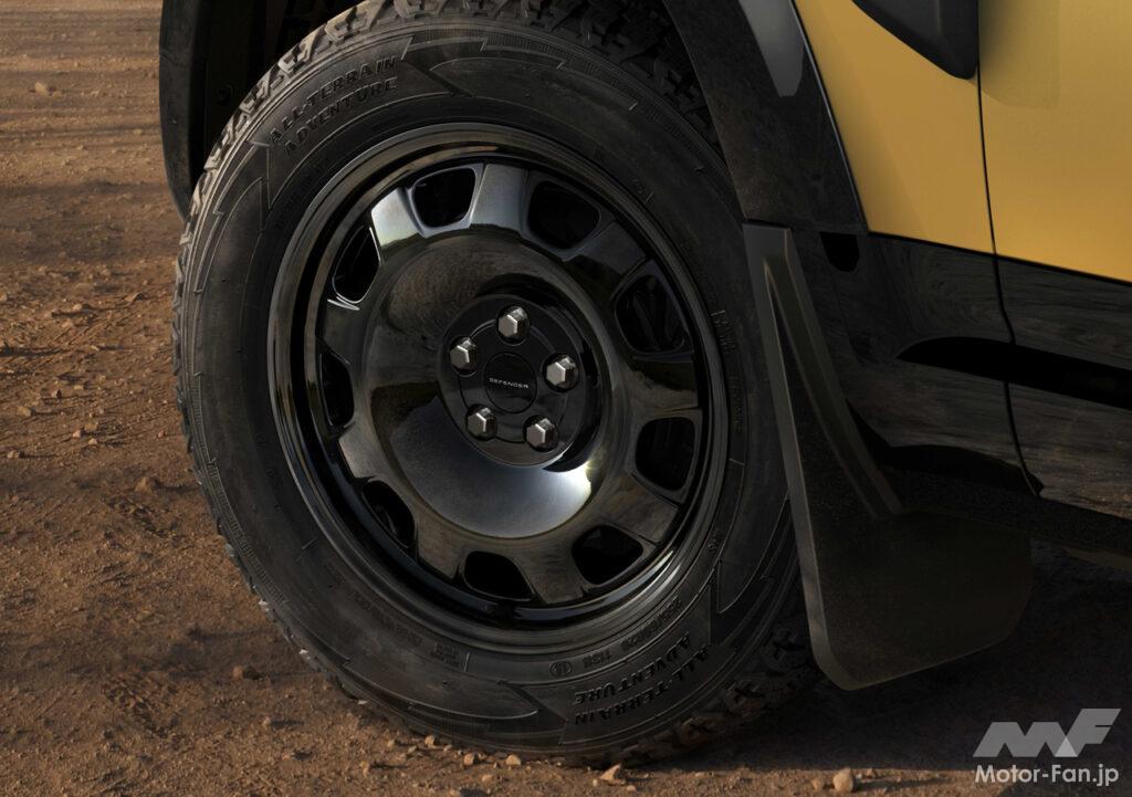 ボディカラーは、過去のチャレンジコンペティションを象徴する黄色を現代的に解釈した“ディープサンドグローイエロー(70台限定)”と、ディフェンダーの故郷である英国の田園地帯をイメージした“ケズィックグリーン(30台限定)”の2色を設定。インテリアにはエボニーウィンザーレザーシート(エボニーインテリア)を組み合わせ、力強さを際立たせている。