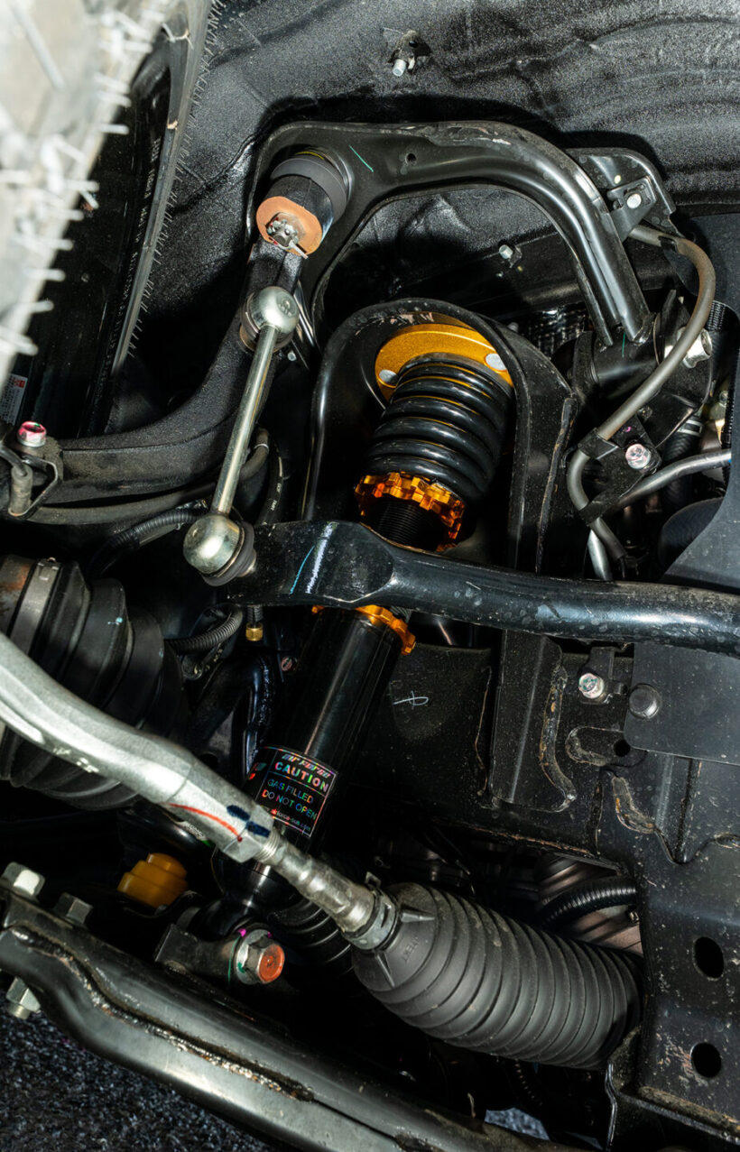 外装 『三菱トライトン』に新グレード追加!? 常識を覆すローダウン仕様が迫力満点だった!【写真・6枚目】 ロワード感が強く、前方への押し出し感も強いが実は純正よりも短いサイズとなるフロント。反り返ったフォルムが独特だ。 KRUISE KR-TRTRR・TRITON 車高調キットで約150mmのローダウン。アップスタイルとは対照的なワイド&ローフォルムを作り出す。 フロントはフルタップ式で、ショックがケースへ入り込み長さを調整することで車高の変更が可能。この方式のおかげで目一杯のローダウン時にもショックが底付きせず、適正な減衰力を発揮することができる。リアは構造変更が不要。可動域確保で乗り心地の良さも実現されている。PARTS PRICE フロントディフューザー8万8000円 リアサイドディフューザー TYPE28万8000円 ルーフエンドウイング11万円 リアゲートウイング7万7000円 ■車高調:ローダウン車高調 24万2000円 ■ホイール:ヴェルズホイールズ・VRF01R SV(22×9.0J) ■タイヤ:レーダータイヤ・レネゲイド AT-5 (275/40 R22) L字型で折り曲げ、下方向に伸ばしたような独特の形状となるリアサイドディフューザー。低くワイドな造形だ。 GSRグレードのスタイリッシュバー上部にボルトオン装着できるルーフエンドウイング。GTウイング風の精悍さが魅力。 後方&上方へとボリュームアップさせたリアゲートウイングはスピード感もしっかり。後ろ姿の好アクセントだ。 この画像の記事を読む