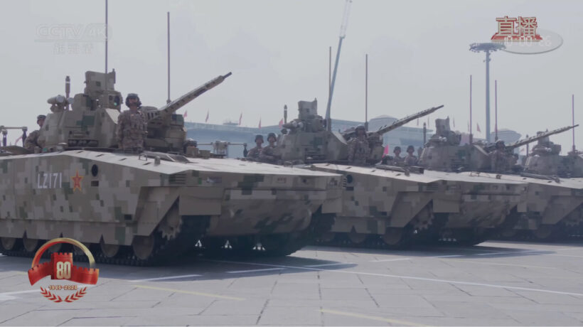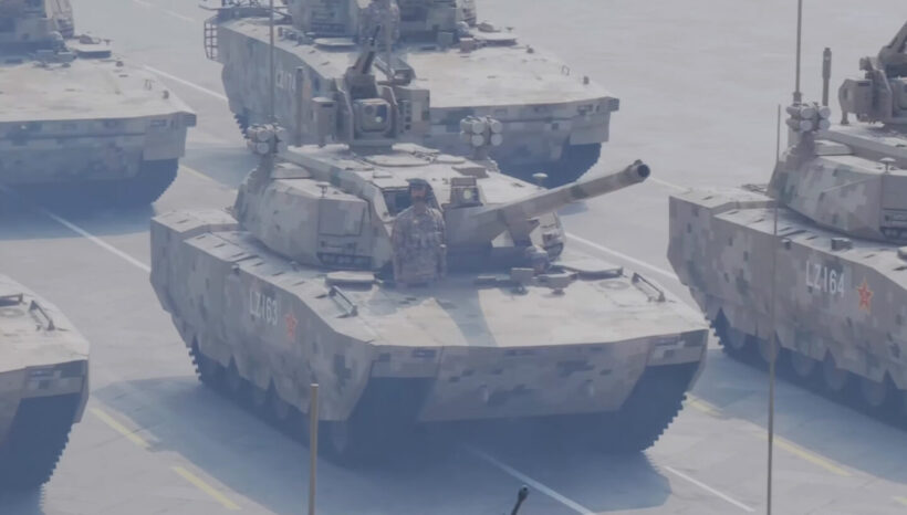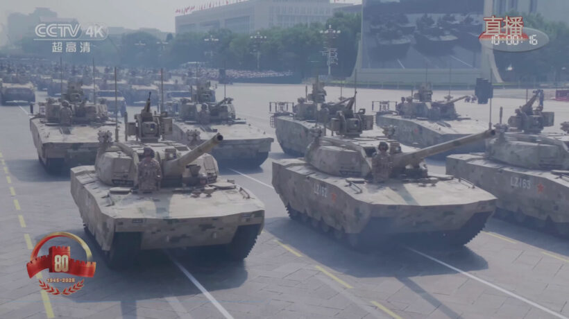 業界人コラム 新型戦車は「弱くなった」!? 主砲をダウングレードした中国軍「100式戦車」とは【写真・2枚目】 天安門前の長安街を埋めて前進する戦車・装甲車の隊列。この日の軍事パレードでは既存の兵器はもちろん、さまざまな新型兵器も登場し、世界を驚かせた(画像:国営CCTV配信より) 99式戦車の最新モデル99B式。125mm砲を搭載する強力な戦車であり、現在の中国の主力戦車となっている(画像/国営CCTVより) 初公開された100式戦車。2025年公開で、なぜ「100式」なのか? 「99式(ZTZ-99)の次(ZTZ-100)」という説や、「中国共産党100周年(2021年)にちなむ」という説がある。筆者は周主席が強くアピールしている「人民解放軍建軍100周年(2027年)」に関連するのでは…とも考えている(画像/国営CCTVより) 砲塔上面には車内から操作するリモート武器システム(RWS)が搭載されているが、これは対ドローンの自己防衛を考えての武装だろう。また、左右の四連の筒型装置は、対戦車ミサイル等を自動迎撃する自動防護システム(APS)と思われる(画像/国営CCTVより) 100式支援戦闘車。中国語表記は「100支援战车(支援戦車)」だが、中国語で戦車は「坦克」のため、この「戦車」は戦闘車両の意味だと思われる。100式戦車と共通の車体と思われる(画像/国営CCTVより) 100式支援戦闘車の後部ハッチより乗り込むドローン・オペレーター。これまで戦車随伴の戦闘車両といえば歩兵を輸送するものだったが、本車はドローン戦に特化している点で既存のいかなる車両とも異なる存在だ(画像/国営CCTVより) 車体後部に置かれたドローン(クワッドコプター)とドローン・オペレーター。 この画像の記事を読む