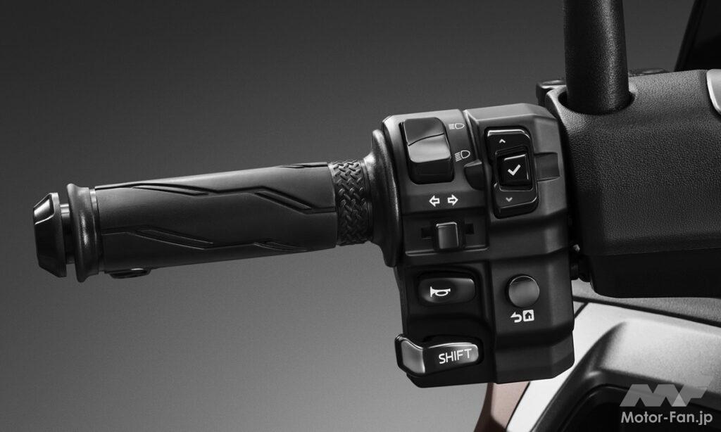 さらに、5インチのフルカラーTFTメーターを新搭載。左ハンドルスイッチで各種設定や車両情報、スマートフォン通知、音楽再生、天気予報などを操作でき、Garmin StreetCrossアプリとの連携による全地図ナビゲーション機能(地図データ永久無料更新)にも対応。デジタル時代の都市型スクーターにふさわしい高い情報連携機能を実現した。