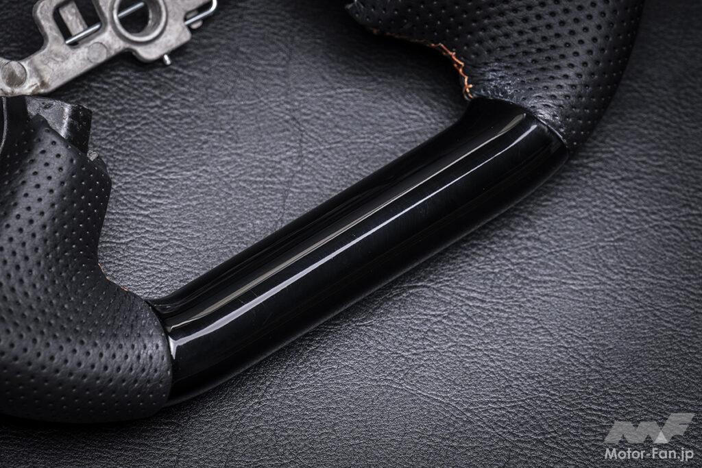 さらに、上下部分はABS素材の樹脂仕立て。ピアノブラックとカーボン調から選ぶことができる。このABS素材はプライマーやクリアなど5層塗装が施され、質感と耐久性の高さが魅力。ガングリップ部はパンチング仕様のPVCレザーを使い握り心地が良く、差し色としてステッチも施されるので、見た目のプレミアム感も抜群だ。