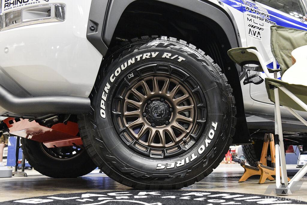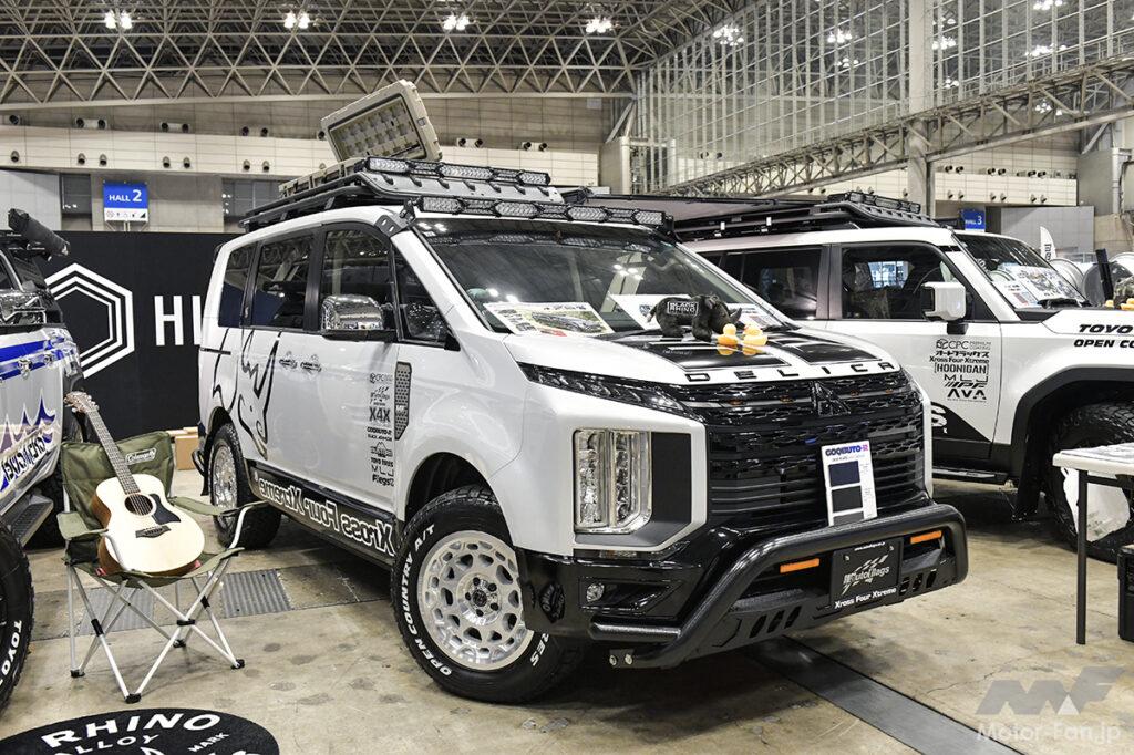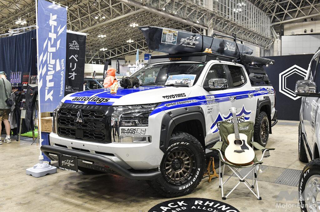 デリカを筆頭とした三菱車のイメージがあるオートフラッグスだが、実はトヨタ車にも積極的! ハイラックスやランドクルーザーも手掛けており、会場にも250を持ち込んでいたのだ。ガード類はまだ開発中とのことで、フルでカスタムできるよう鋭意製作中。今後の期待が高まるアイテムが盛り沢山だ。