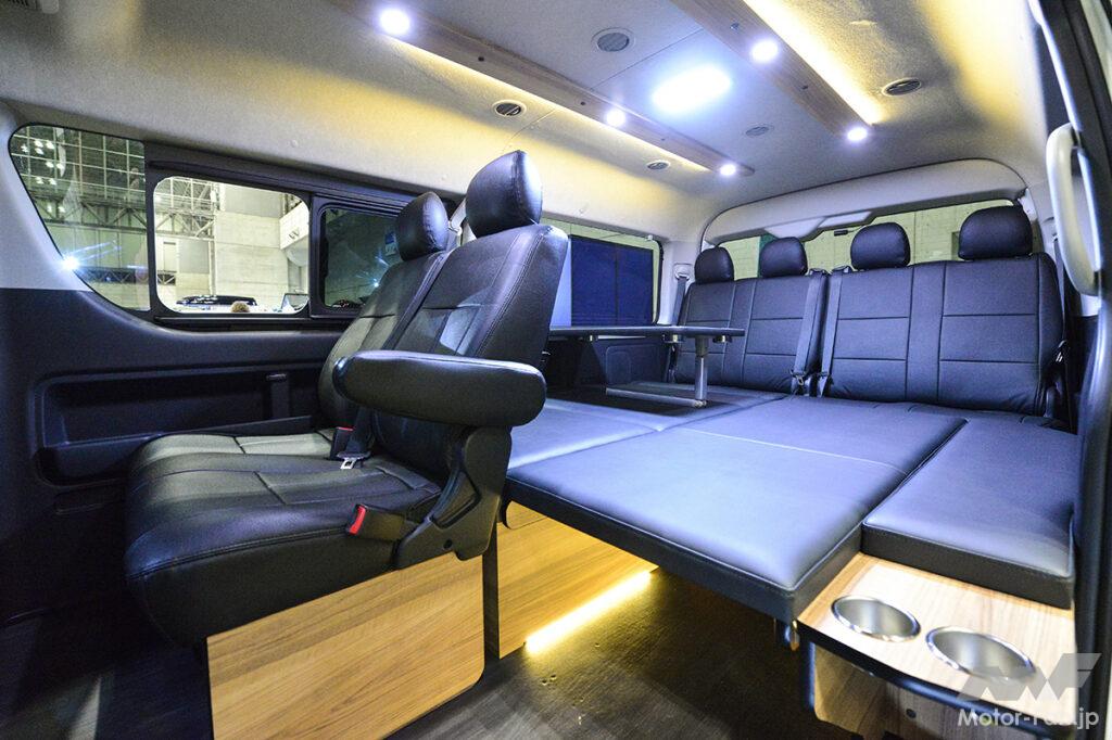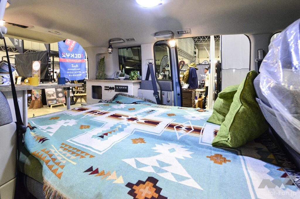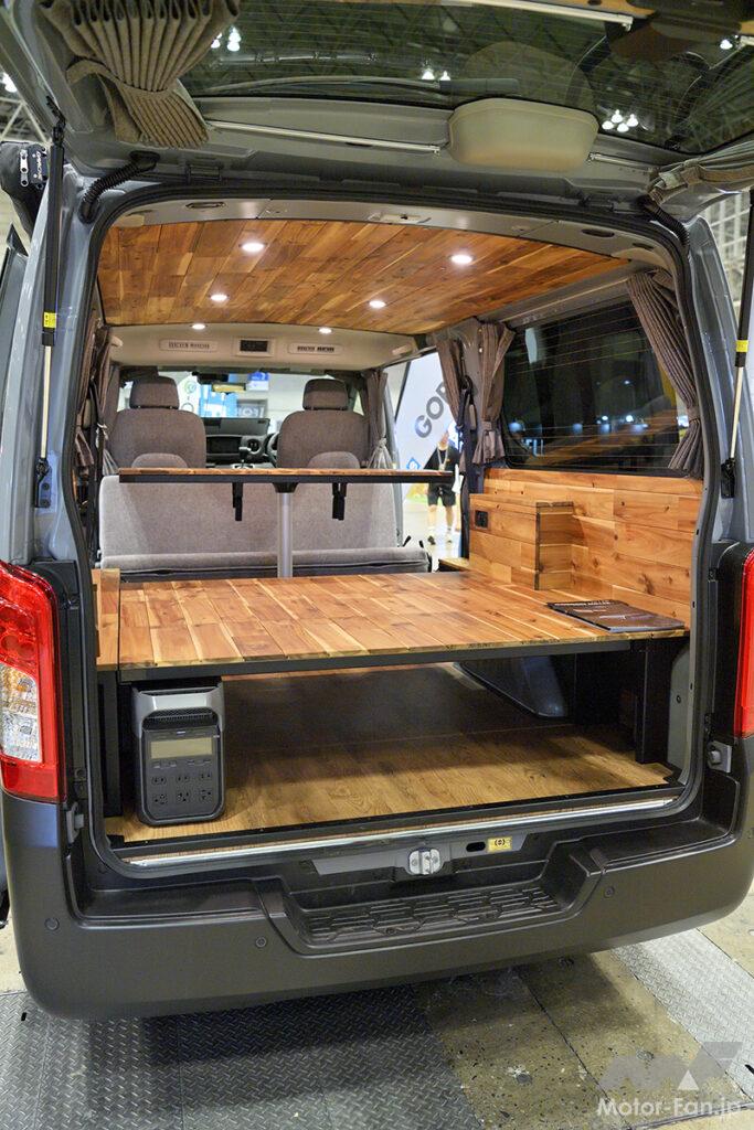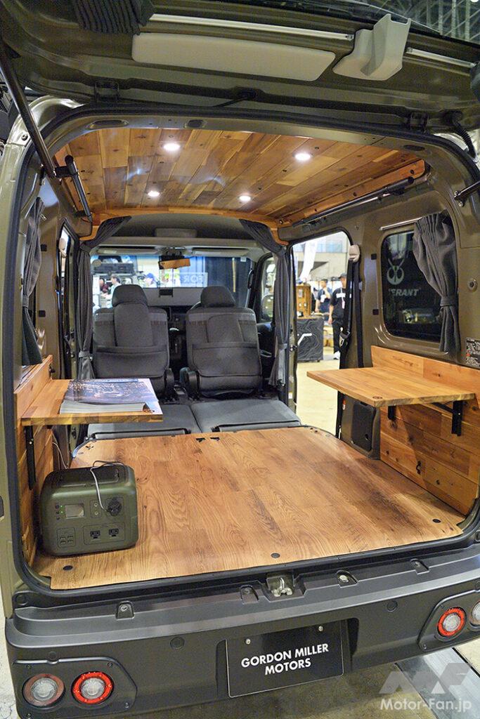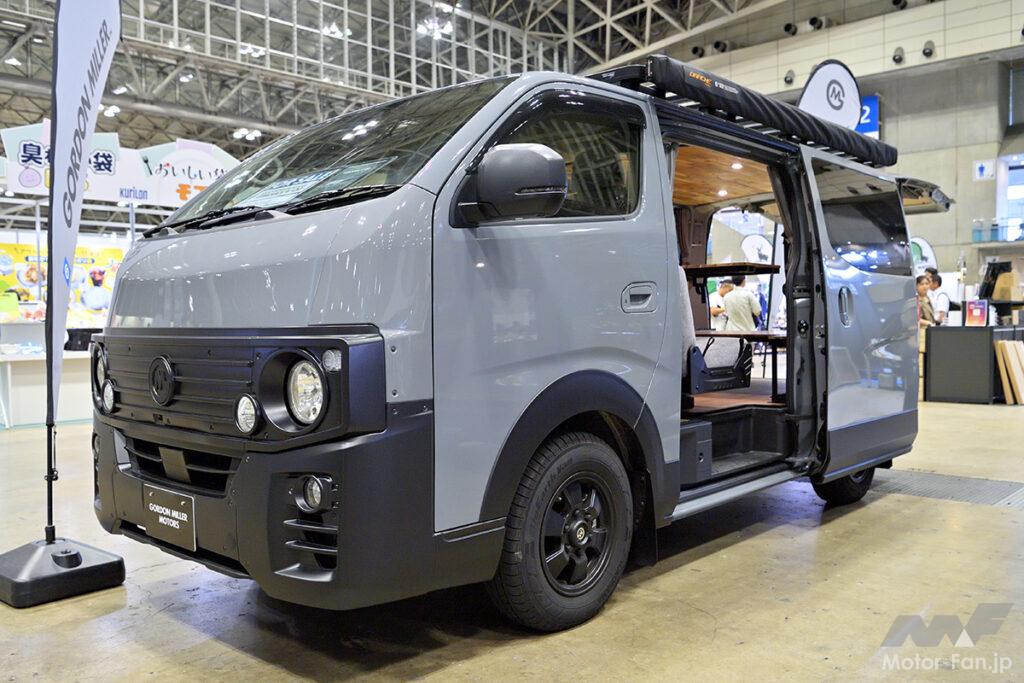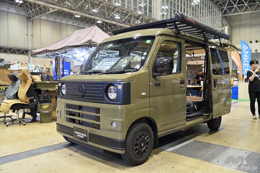 車中泊が似合う、実用性とルックスを兼ね備えた新車コンプリートを提案するゴードンミラーは、キャラバンとハイゼットカーゴを出展。うち後者はシリアルナンバー入りの40台限定車だ。ちなみに両車ともに納期は2〜3ヶ月。