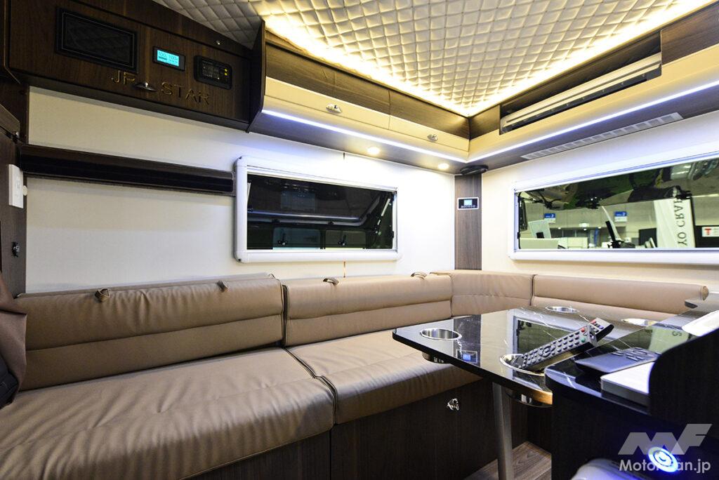 軽トラベースのキャブコンで知られるJPスターが新モデルを開発。特徴はハイゼットトラックにはないターボエンジンを求め、ベースをアトレーバンに変更した点。リアのワイド化に合わせ、専用インセットの鍛造ホイールを用意している点にも注目。快適&安全にこだわっている!
