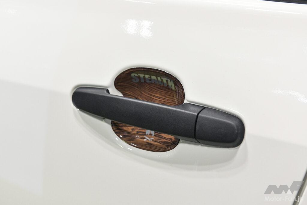 ハイエースバンの3、5ナンバー仕様化が得意なステルスは、プロボックスにも力を入れている。グリルマーカーや後席に角度をつけるアイテム等々“使える”アイテムを披露。プロボックスは今後さらにアイテムを開発し、来年のオートサロンを目標に仕上げていく計画だ。