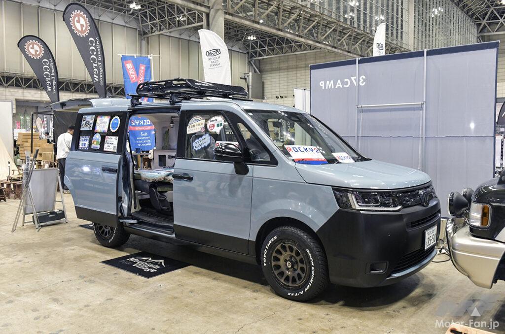 ミニバンを快適車中泊仕様で仕上げるのが得意なロッキー2。このステップワゴンはベッド展開時にテーブルを車両後方で展開できるようにするなどブラッシュアップ。前後バンパーを黒化するなど、使える中身だけでなく、魅せるエクステリアを手に入れたのも特徴だ。