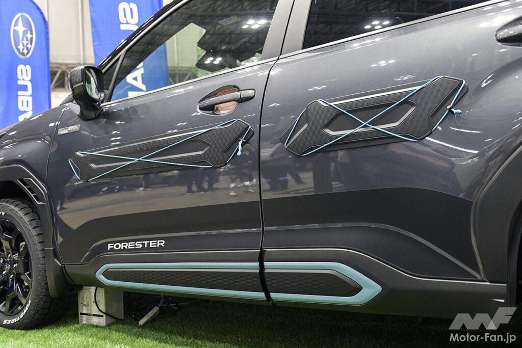 今春デビューしたばかりの新型SL系フォレスターを、アウトドア仕様でカスタマイズ! しかも純正アクセサリーで、というから驚き!! 車体後部のオーニングテントが目立つが、コレはドメティックとのコラボアイテムで、用品として販売。レジャーの現場でベース基地になるため、アウトドア派オーナーにはとくにオススメ。自転車を立てかけることも想定したボディサイドやランプ部のプロテクターもユニーク。コレら便利なアイテムがディーラーで買える!