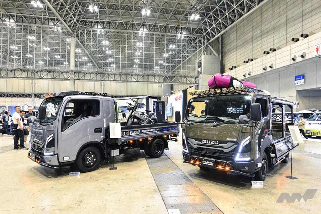 軽トラで人気のカスタムを1.5tクラスのトラックでしてきたのが面白い! しかも手を組んだのが、軽トラカスタムでお馴染みのハードカーゴ。カッコ良く、便利に仕上がるのは当然だった!! キャンピングカーベースとして登場したトラヴィオを架装したキャブコンも展示していた。