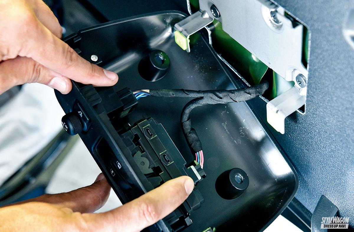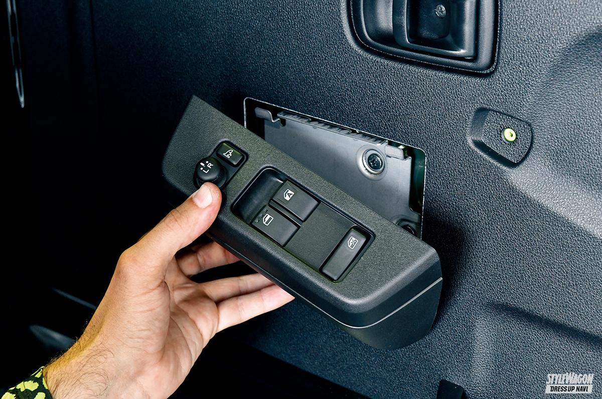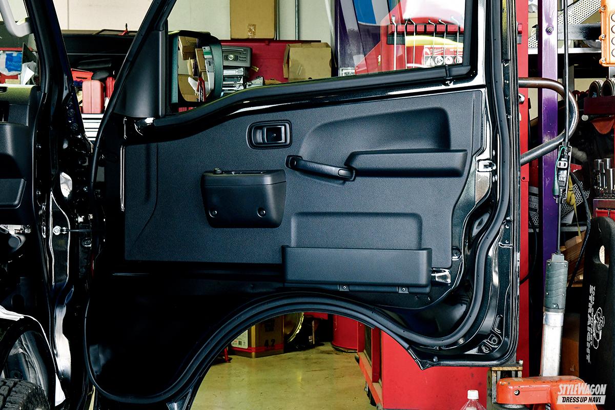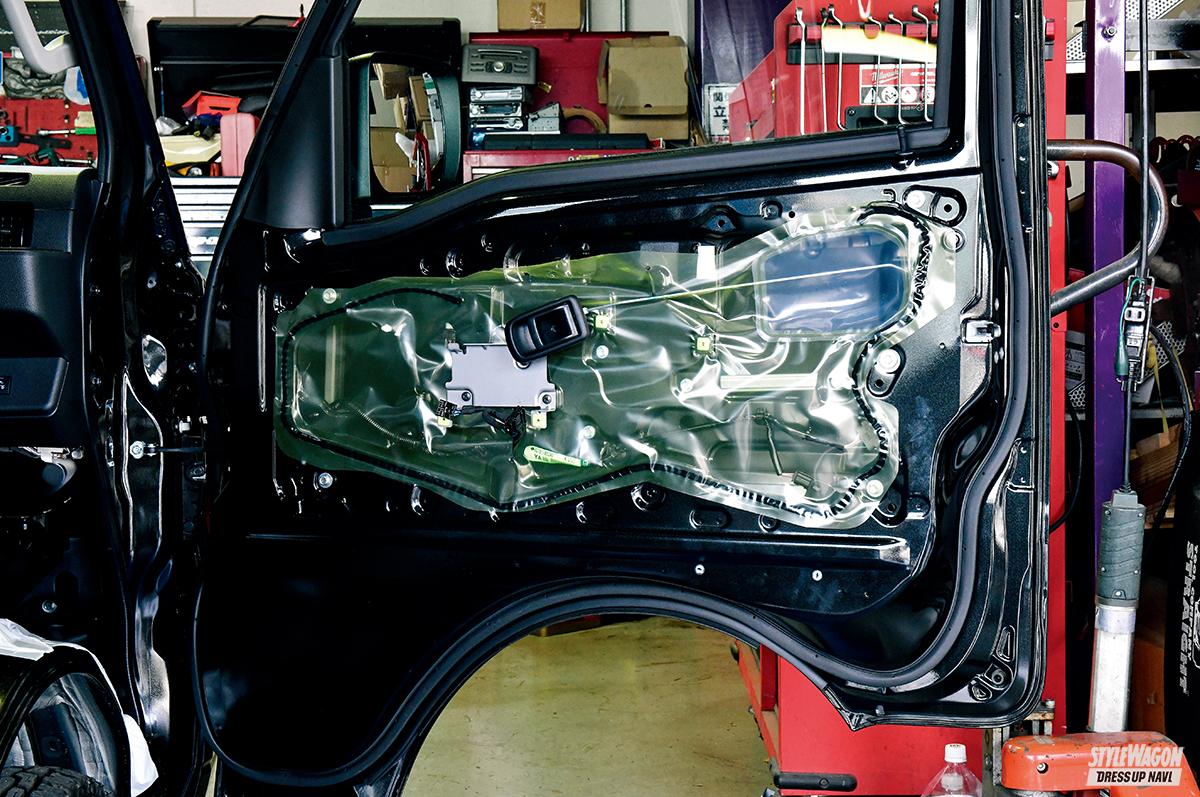 最近の軽トラは上級グレードになると装備が充実しており、窓の上げ下げも例の「クルクル」ではなくパワーウインドウだったりする。とは言え配線でがんじがらめになっているわけではないから、すべてのネジを見つければ簡単に外せる。