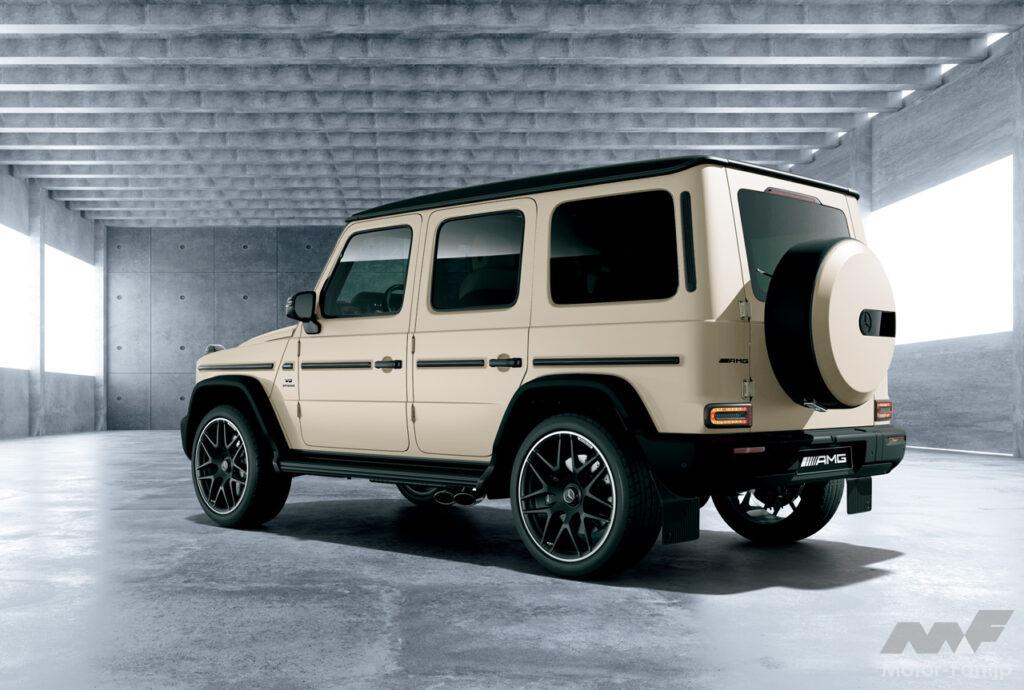 さらにGクラス初採用となる「AMG専用ブラックエグゾーストシステム」や、ブラックパーツが追加となる「AMGエクステリアナイトパッケージ II」といった同モデル限定装備、通常モデルでは有償オプションの「AMGナイトパッケージ」など、エクスクルーシブなアイテムを多数採用。