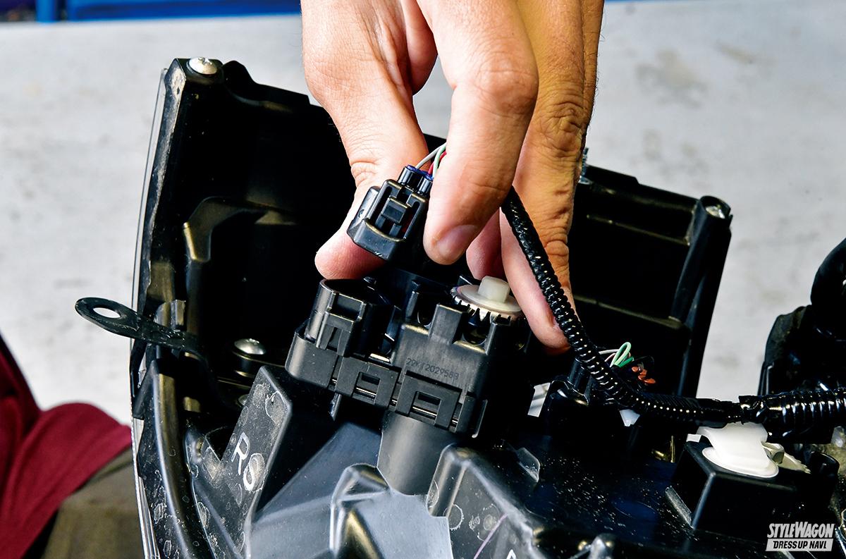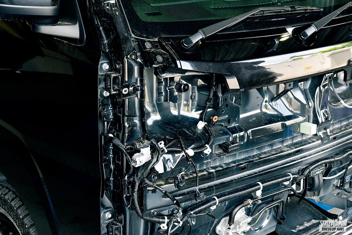 今回の撮影で使用したハイゼットジャンボは、上級グレードのエクストラ。このモデルだけ標準でLEDヘッドライトを装備(他のグレードは一部を除きオプション設定)。LEDだから脱着の難易度が高いのでは…と思ったら、意外とあっさり外せる。