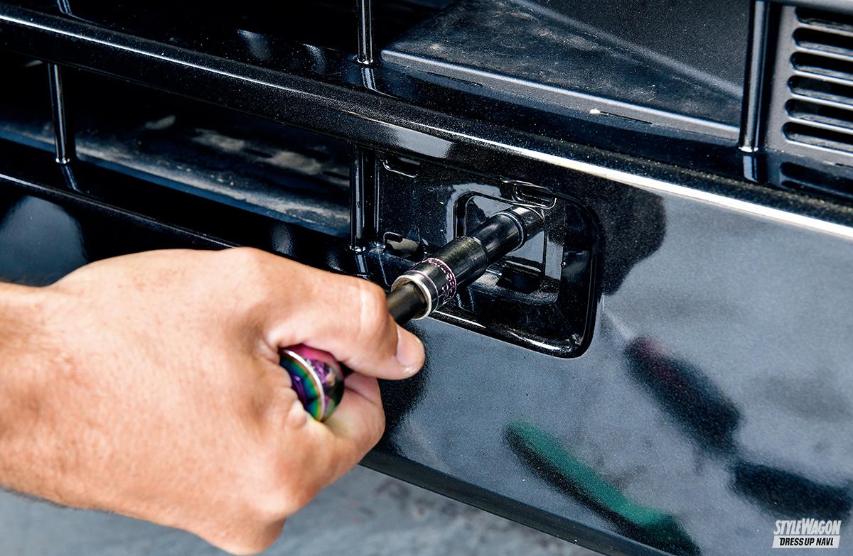 フロントバンパーの外し方をマスターすれば、フォグランプのカスタマイズやホーンの交換などに役立つ。マイナーチェンジを行った現行ハイゼットで注意しておきたいのが、グリル上部のクリップが車体にガッチリ固定されていること。ここはとにかく焦らず、絶妙な力具合でクリップを1個ずつ外していこう。またグレードによってフォグランプを装備しているため、カプラーも忘れずに抜くこと。くれぐれも配線をブチらないように。