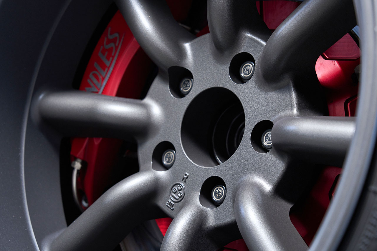 RSワタナベのエイトスポークといえば、S30フェアレディZの時代から続く定番ホイール。S30をオマージュしたデザインのRZ34に似合うのも当然で、温故知新を感じさせるそのスタイルは、今見ても惚れ惚れするものだ。