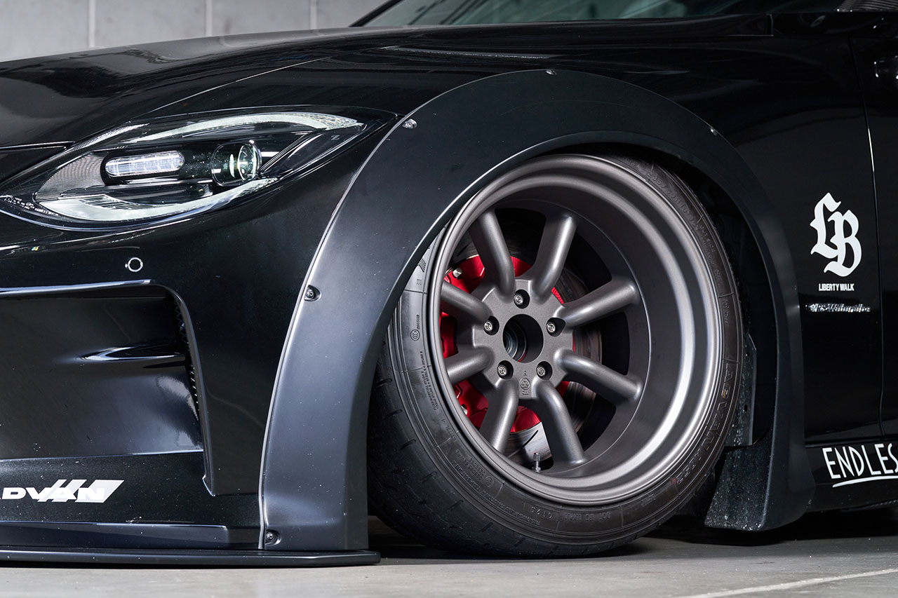 このホイールはリバティーウォーク専用サイズであるため、lb★nationボディキットとのセットが基本。しかし、その唯一無二の迫力を前に、RZ34オーナーなら誰もが欲しくなるはずだ。リバティーウォークのこだわりとRSワタナベの技術が融合した、究極のホイールと言えるだろう。