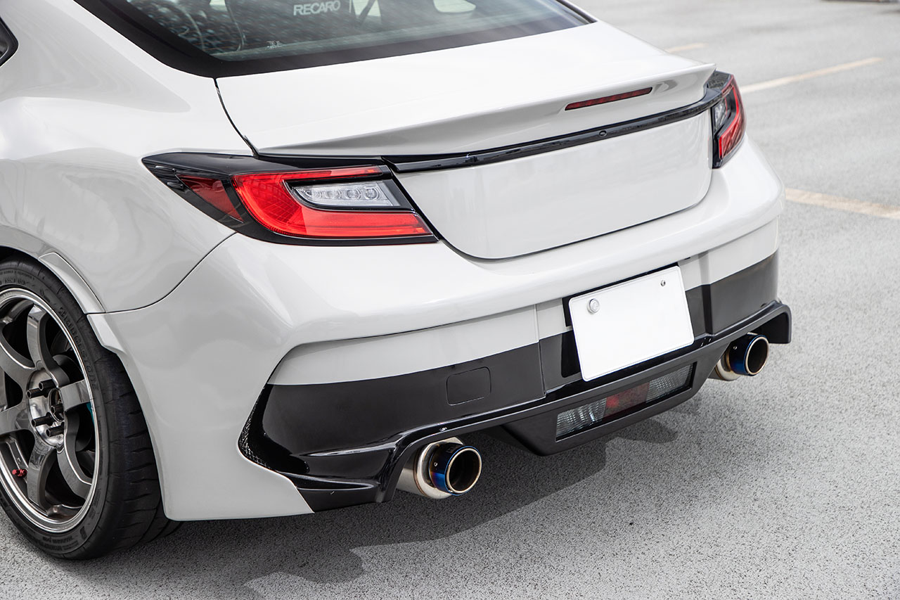 リヤバンパー(10万7800円)は、特にこだわり抜かれたポイント。ノーマルのリヤビューが持つ重厚さを軽減するため、ボトム部分の厚みを抑え、軽快感のあるデザインを実現。ボディ同色仕上げはもちろん、ブラックで塗り分けることでさらに引き締まった印象を与えることができる。