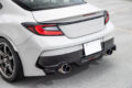 リップ部は前方に伸ばしつつ下面をフラット化し、保安基準適合サイズのカナードも設定。これによりサーキット走行で求められるフロントのダウンフォースを確実に稼ぐことができる。
