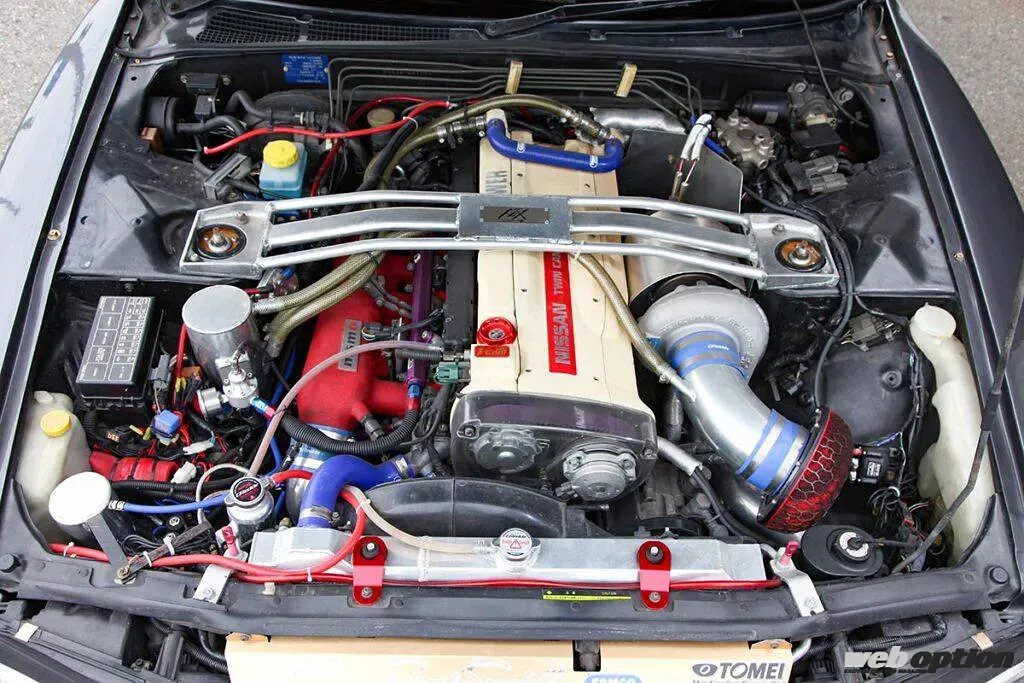 心臓部は、HKSのキャパシティアップグレードキットで2.8L化。低中速域のトルク特性を考えてカムはIN、EX共に264度をセレクトし、IN側にはHKS Vカムシステムを投入する。また、点火系にはガレージ八幡オリジナルトランジスタを装着。「ブースト圧を1.7キロ以上掛けるなら必須のパーツ。燃調が濃い目でもきっちり燃焼するからトルクを出せるよ」と森田さん。