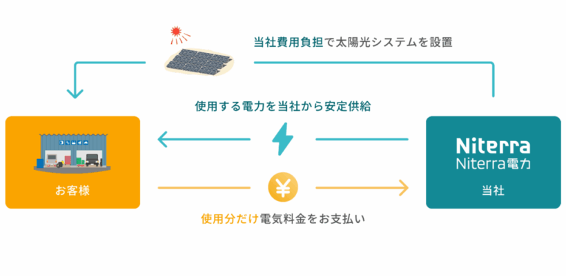 「電力からサステナブルな未来を考える」というコンセプトのもと、Niterra 電力は「グリーン電力の拡大・地産地消=最大活用」を促すソリューションを提供する。具体的には太陽光の PPA (Power Purchase Agreement)、電気小売、および環境価値の証書化と販売を行い、本取り組みから生成される電力、環境価値を最適分配することにより、顧客に対して価値を提供するとともに、結果としてグリーン電力の拡大、活用を促し、サステナブルな社会の実現に寄与する。