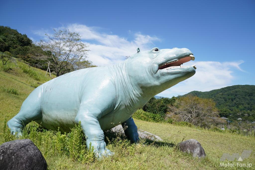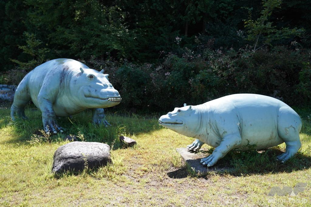 会場の公園付近は秩父の山中ながら、かつて海だったそうで、近くで化石が発掘された1500万年前の哺乳類の海獣「パレオパラドキシア」と2mもあったという「チチブサワラ」の復元像が設置されており、個人的は非常に興味を持った。パレオパラドキシアは円柱を重ねたような歯に特長があったのだそう。